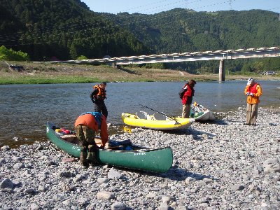 ![]() 川へとやまねこV号艇をやや緊張しながら運ぶ |