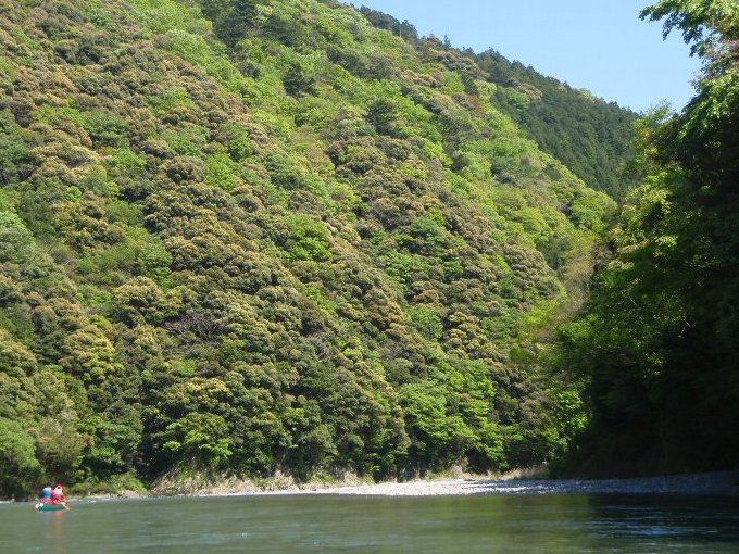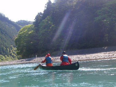 私達にとって、カナディアンカヌーでの流水ダウンリバーは初めてなので、慎重に漕ぐ。