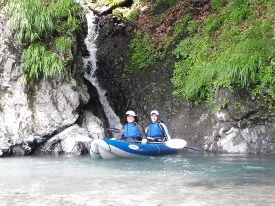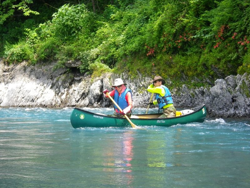 大井川ブルーの水を漕ぐ、もけけっち艇 |