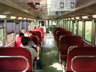 レトロな駅で、のんびりと待ち、千頭行きの電車に乗車。
