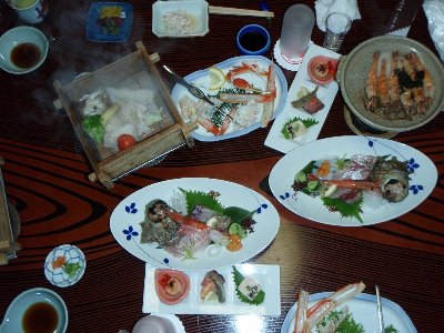 因幡の白うさぎの 白兎海岸で昼食にする、 混んでいてしばらく待ったが、美味い海鮮が食べられた。