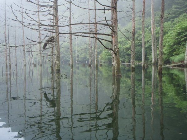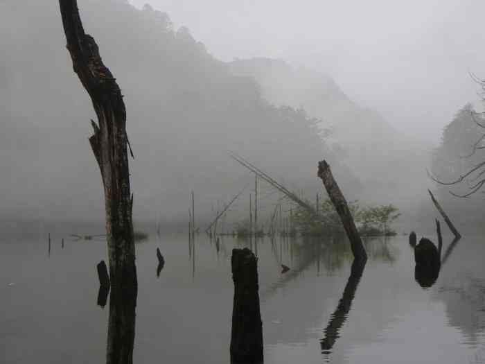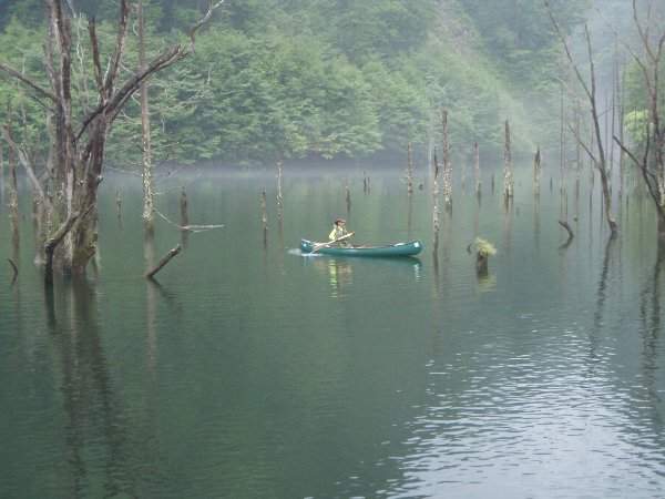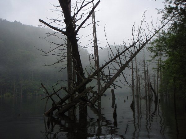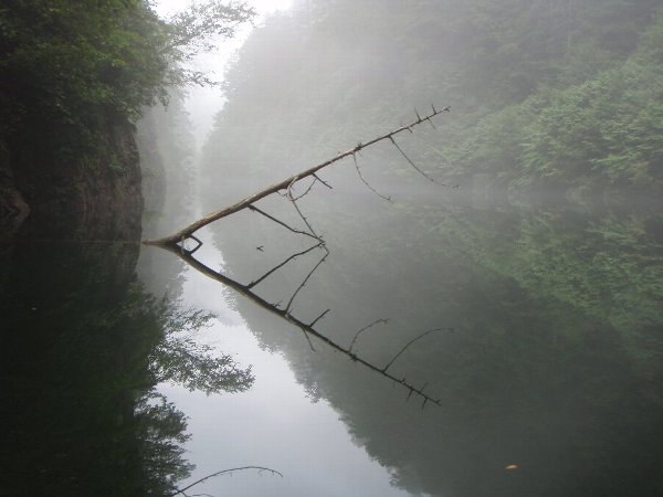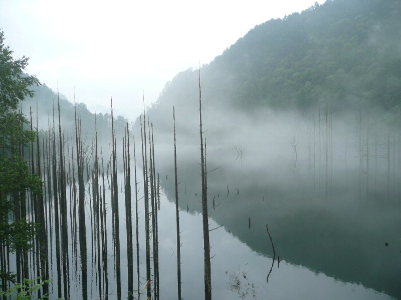 ![]() 墨絵のような、もやのかかった、御岳自然湖 |