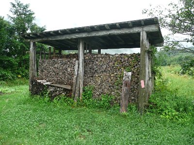 冬の備えの薪が、あちこちに |