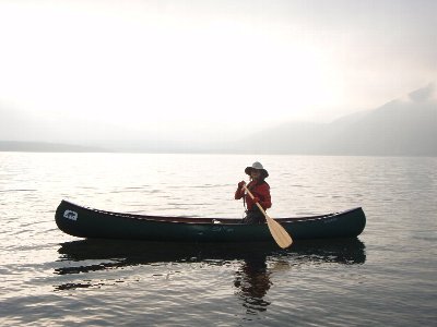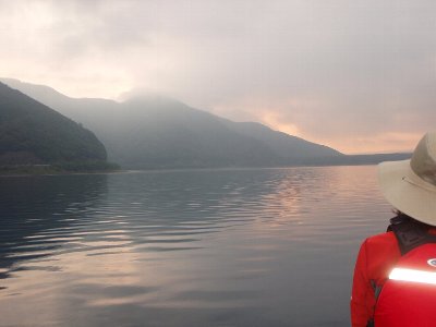 翌日の早朝カヌーの出艇場所をさがしながら湖を一周し、ペンションへと引き上げる。