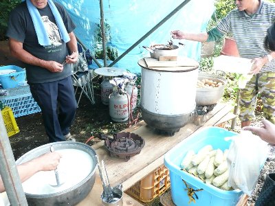 ![]() 牛乳、とうもろこし、ジャガイモが配給される。 |