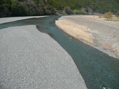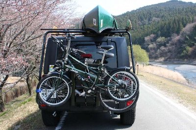 ![]() 気田川に到着、 26インチMTB 20インチの 2台搭載 |