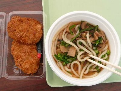 売店がたくさんでていたので、ここで、うどんや、コロッケ、など食べ、昼食。