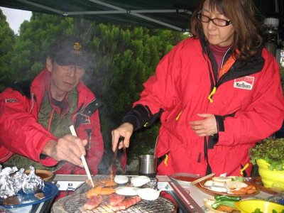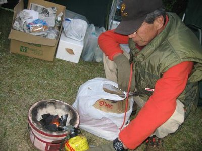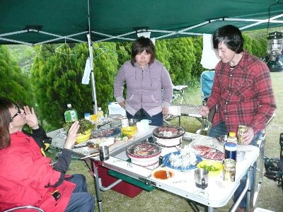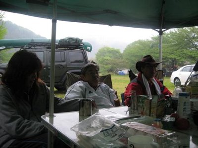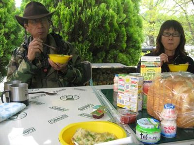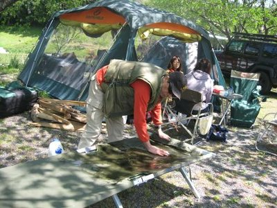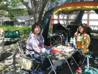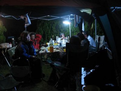 もけけ夫妻が到着、昼食をいっしょにとり、ベースの設営完了。
