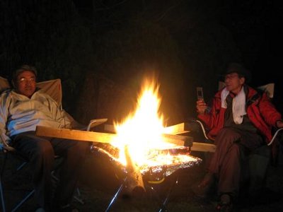 ![]() 夜遅くまで、焚き火を楽しむ。 |