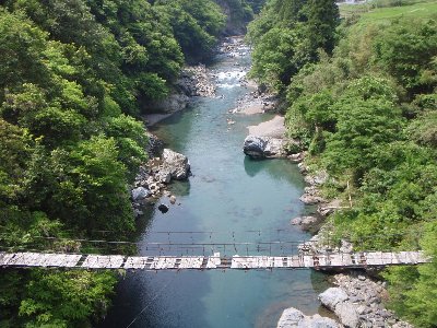 スタート地点すぐ下の橋から 壊れかかった吊橋 |