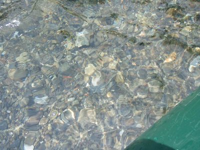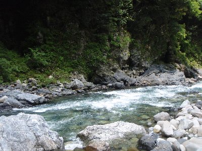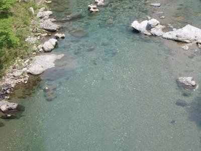川の水は、澄みきっっている。 |