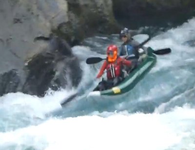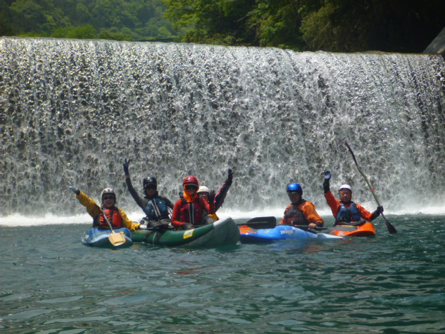発電所下の瀬に、突入 カヌー協会の O さんに、動画をとってもらう。