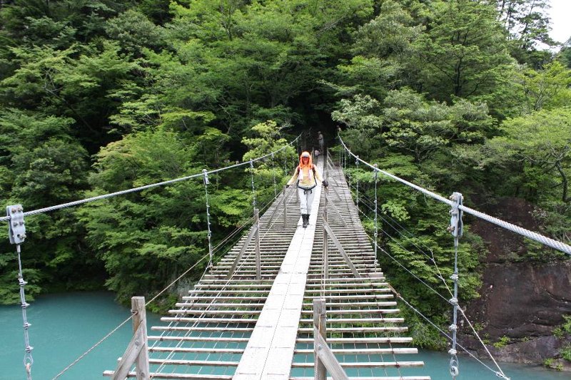 ![]() 吊橋を渡り終える |
