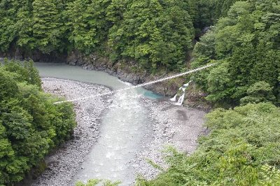 ![]() 吊橋、なかほどからの光景 |