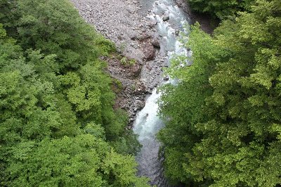 ![]() 飛龍橋から見た、谷底の川、 龍がごとき。 |