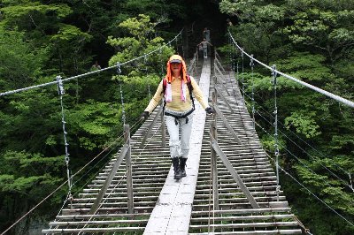 ![]() 揺れる吊橋を、真剣に歩む |