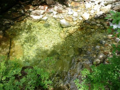 沢の水が、とっても冷たい |