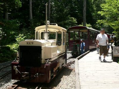 早めの昼食を駐車場で済ませ、森林鉄道に乗ってみる。