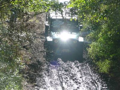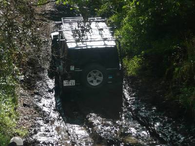 ![]() 山を越え、コースに入っていく。 ここで、すでに車の腹を擦ってしまう。 |