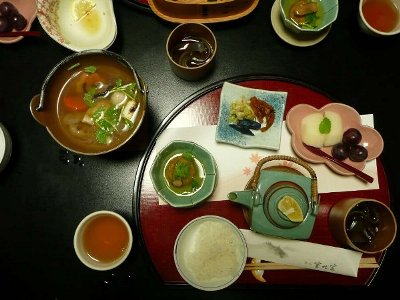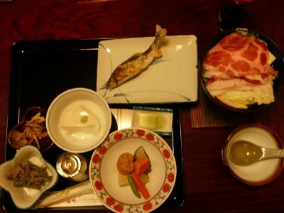 食事の時間となるし、と 観劇はやめ、 宿にもどり、 風呂、夕食