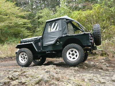 ![]() 大岩を登る三菱Jeep |