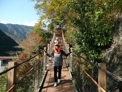 トレッキングコースには、いくつもの吊橋があるが、橋が階段になっている。
