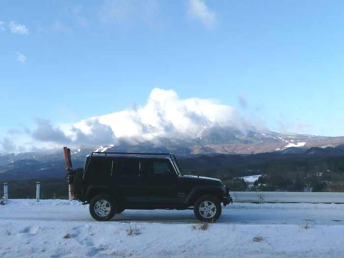 開田高原 マイアスキー場 2回目 2012.01.13 いつもの場所で・・・・、 御嶽山は雲がかかっている |