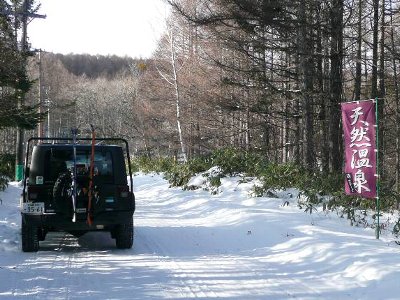 天然温泉の旗をたよりに、温泉へと走るが、けっこう遠い。
