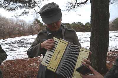 ![]() 近くでは、アコーディオンで遊ぶ兵 |