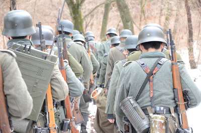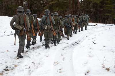 ![]() 黙々と歩く兵士達 |