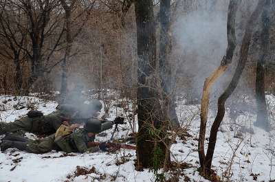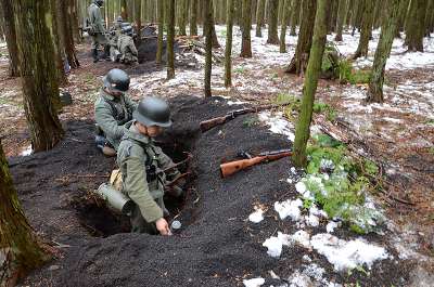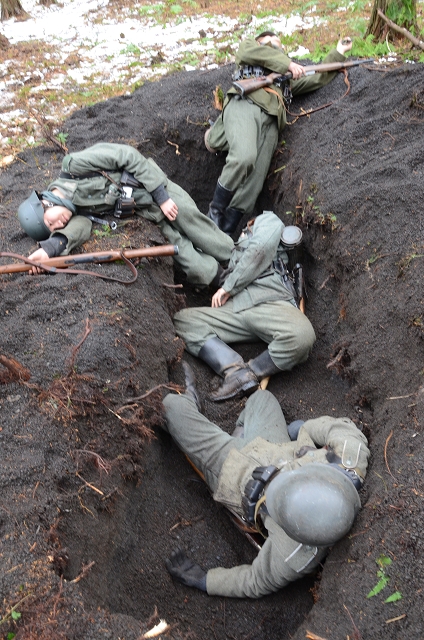 ![]() 昨日作った、塹壕陣地へ到着 |