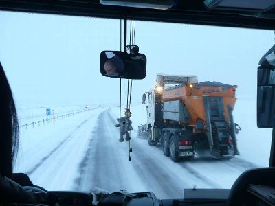 レイキャヴィークへ戻る、国道1号線も雪に世界。