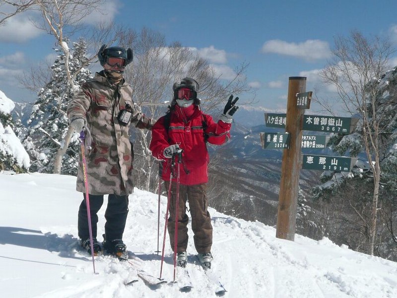 御嶽山をバックに記念写真