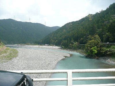 天竜川と気田川の合流点から赤い橋を通り、気田川を見ながら上流へと走る。