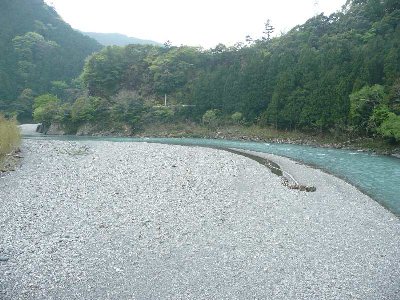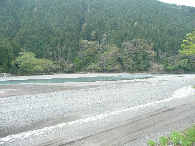 下社前の橋から上流方面 オートキャンプ場の川原 |