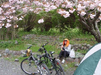 ![]() 神社前ベースで 花見で昼食 |