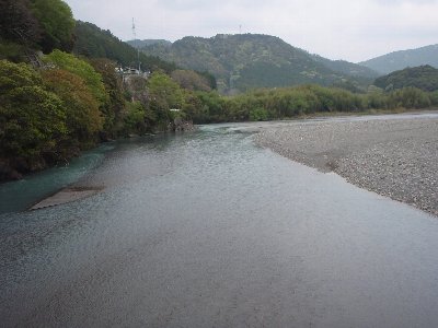 青い橋から上流方面 |