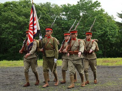 軍旗とともに戦場へ向かう日本軍 |