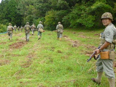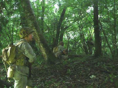 我が海兵隊は、敵陣地を目指し、慎重に前進。