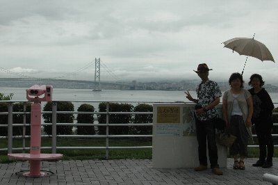 瀬戸大橋、雨は降っているが、ここは記念写真と、