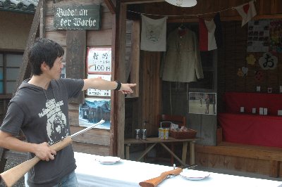 説明を聞きながら、 展示してある軍服の年代や、靴の紐の結び方、銃の取扱いなどを