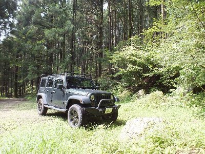 森林の中、林道を走り |