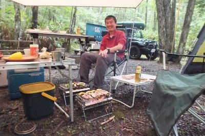 そしてキャンプにもどって、禁断のビール(笑)で、お楽しみバーバーキュー