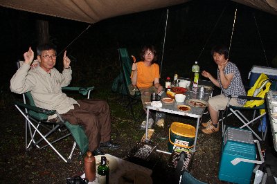 キャンプ場へ、ベースキャンプ設営し、