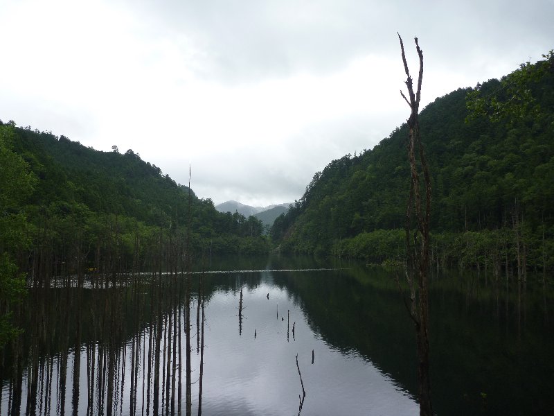 雨も止み、鏡のような湖面 |