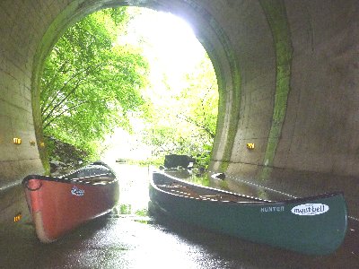 水位が高く、トンネル内に漕ぎ入れる |