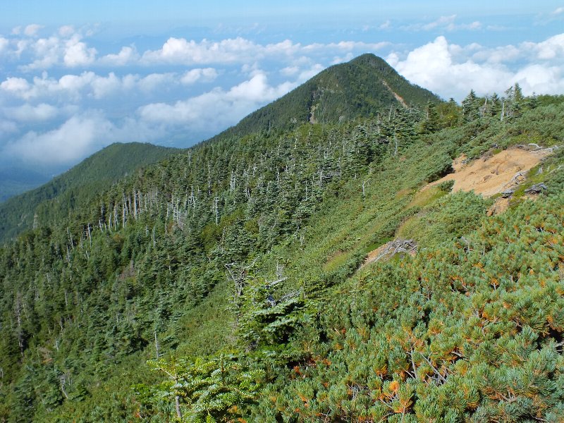 | 八ヶ岳 オーレン小屋〜硫黄岳 2012.09.14 峰の松目への登山道 展望の効く 唯一の場所からの赤岳 |