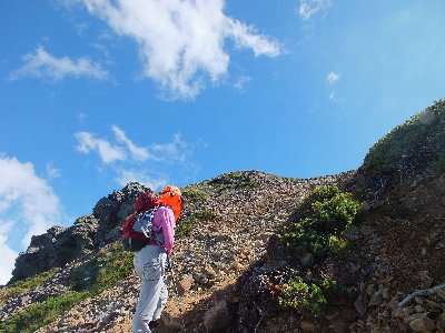 頂上で休憩後 赤岩の頭を目指して歩く |