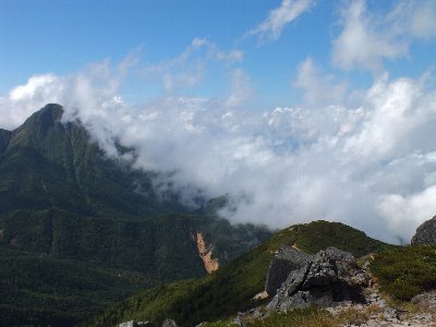 赤岳に雲がかかってきた。 |