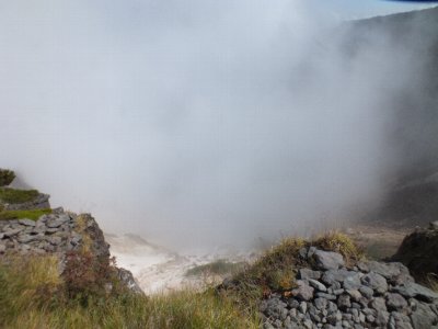 爆裂火口を覗くが、雲で見えない。